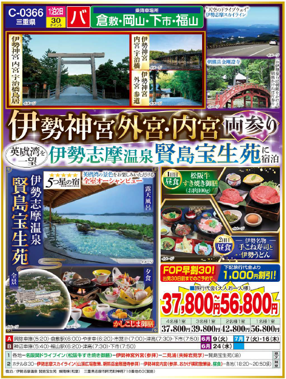 C0366[倉・岡・下]伊勢神宮 外宮・内宮 賢島 宝生苑