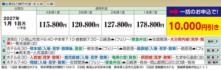 S5024 第24回日本100名城巡り九州5県7城周遊≪3泊≫
