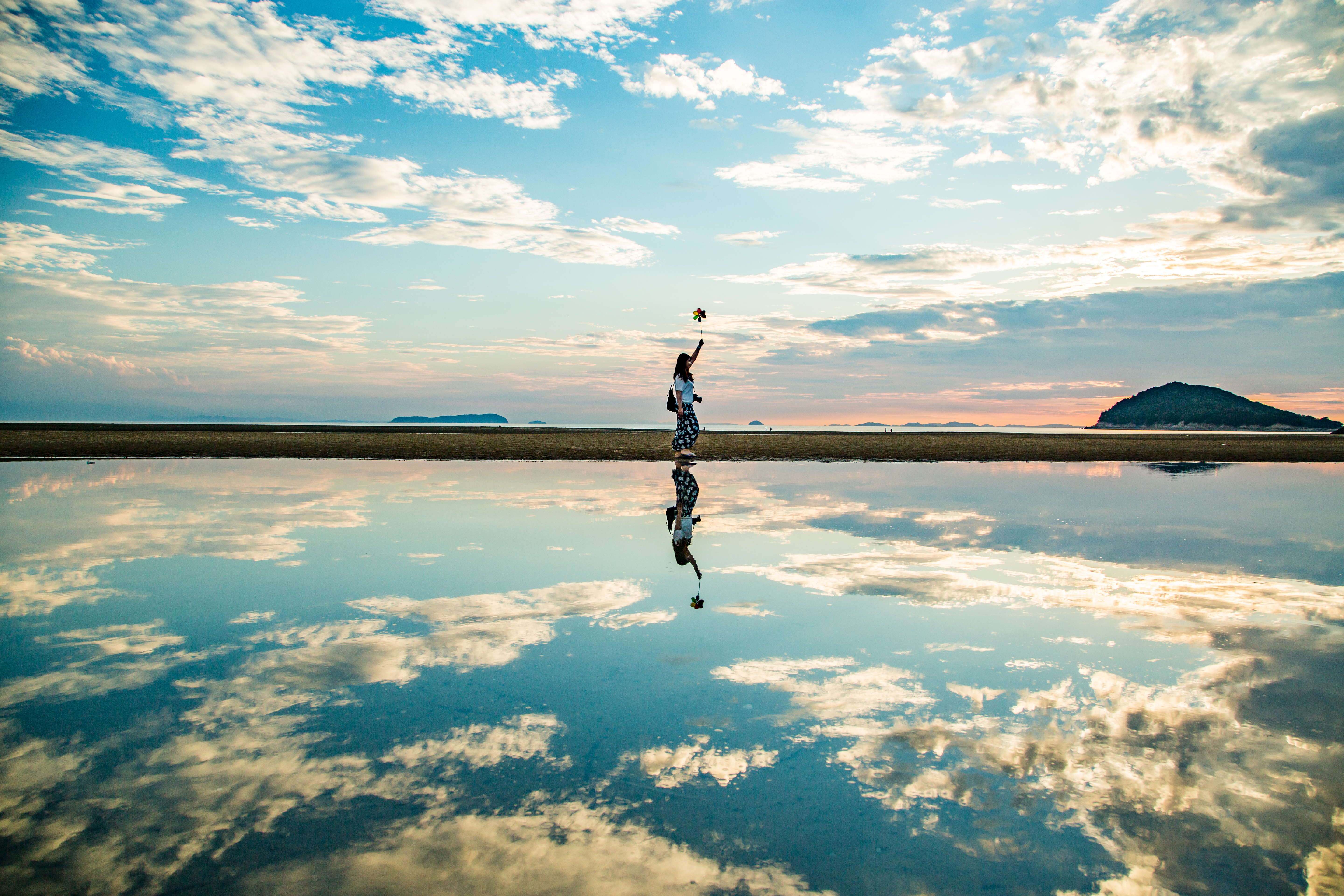 ※父母ヶ浜は、「干潮時間」=「鏡のような写真がとれる時間」に立寄りを予定しております。風がなく水面が波立っていない場合は、よりきれいに撮影ができます。