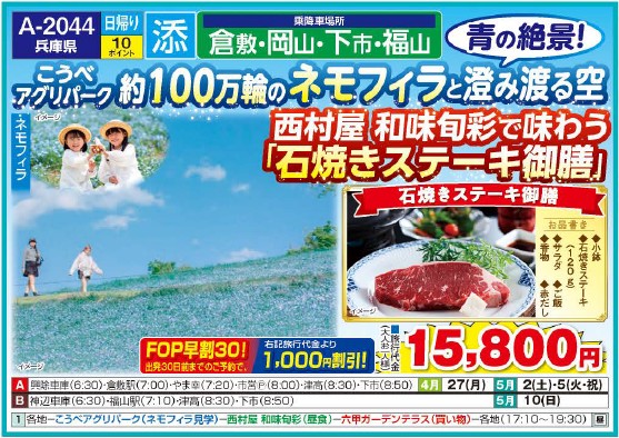 | 1 | 各地==こうべアグリパーク(ネモフィラ見学)=== |
