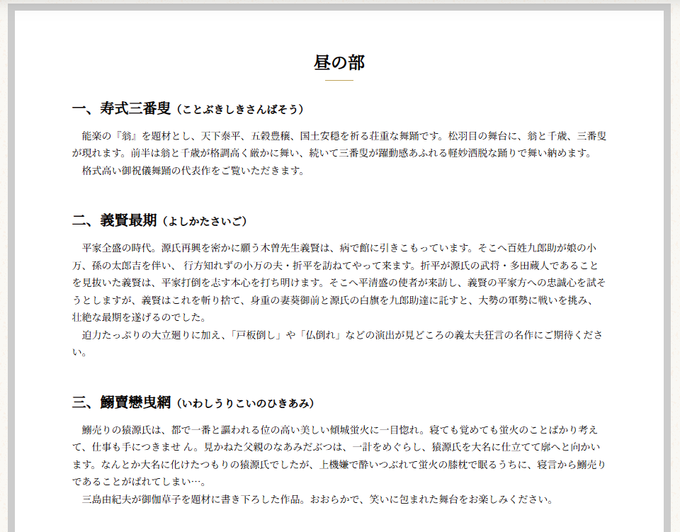 一、寿式三番叟(ことぶきしきさんばそう)