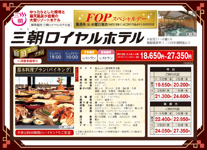 往復バス+宿泊(1泊2食付)セットプラン/大人30,450円〜31,750円
