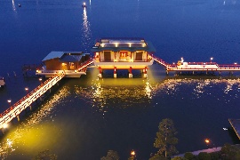 山陰八景に数えられる東郷湖。その湖上に浮かぶようにそびえる優雅な旅館。
