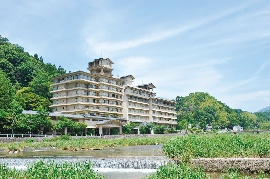 山陰八景に数えられる東郷湖。その湖上に浮かぶようにそびえる優雅な旅館。